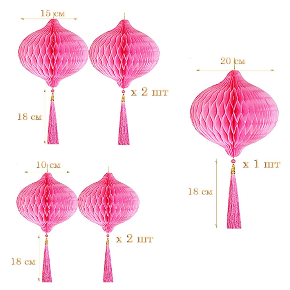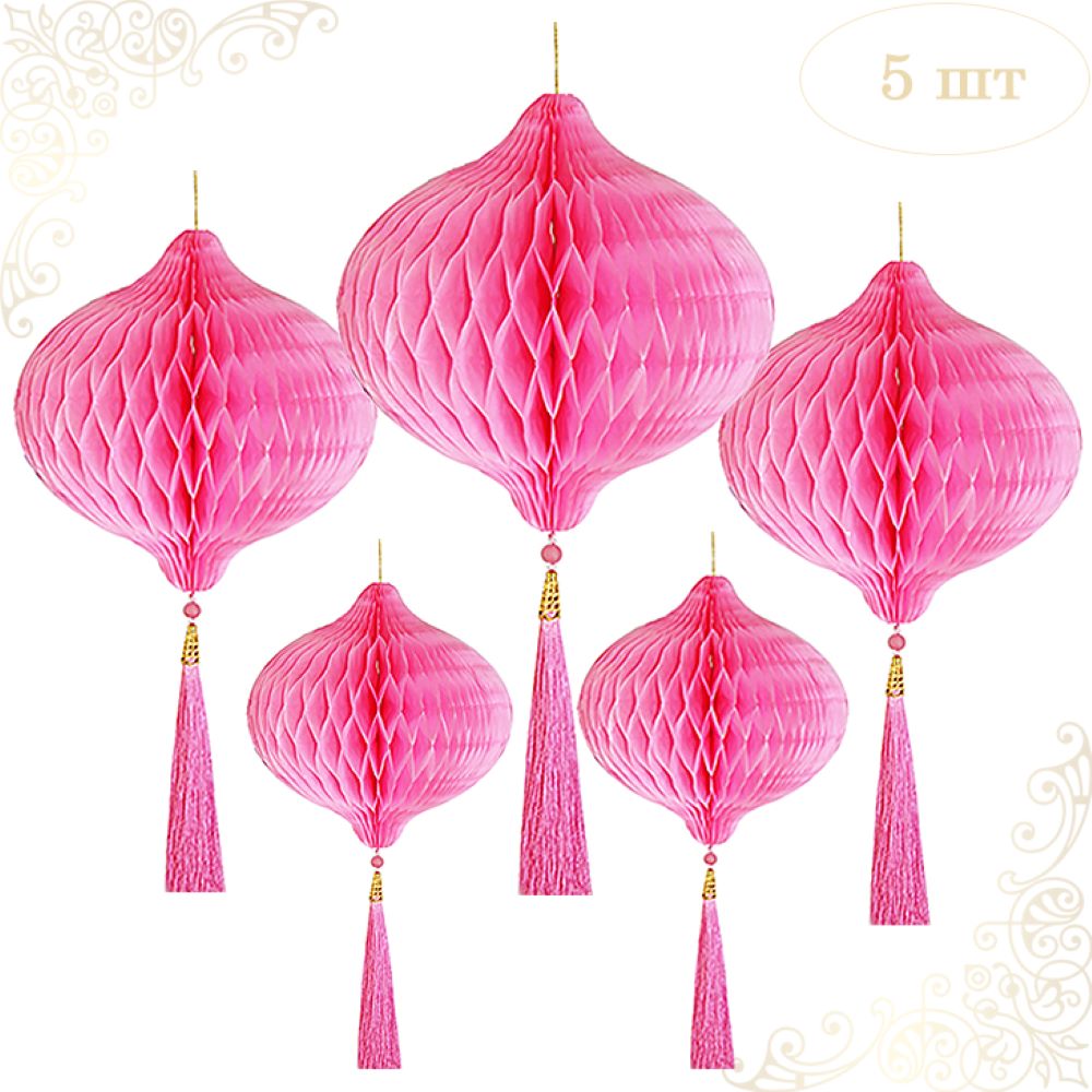 Бумажное украшение Шары-соты с кисточкой НАБОР 5 шт, розовый