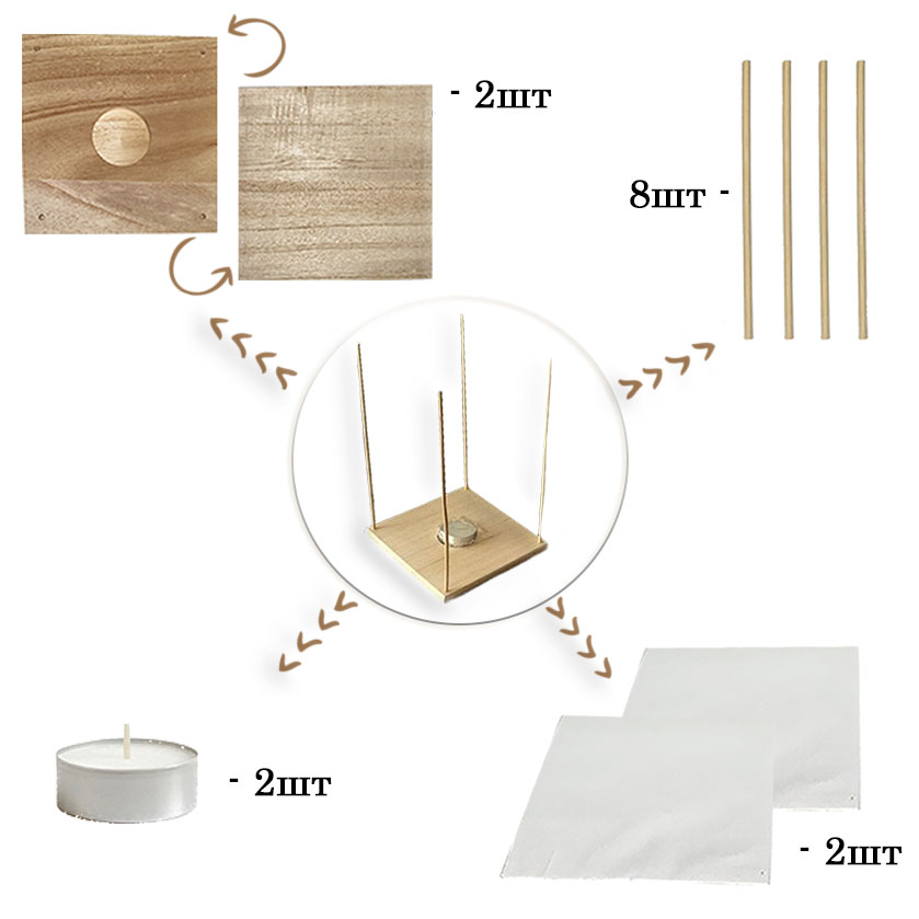 2. Четыре деревянные стойки — легко монтируются в специальные пазы на основе.
