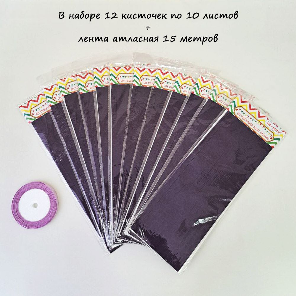 Гирлянда тассел 12 кисточек по 10 листов, фиолетовый
