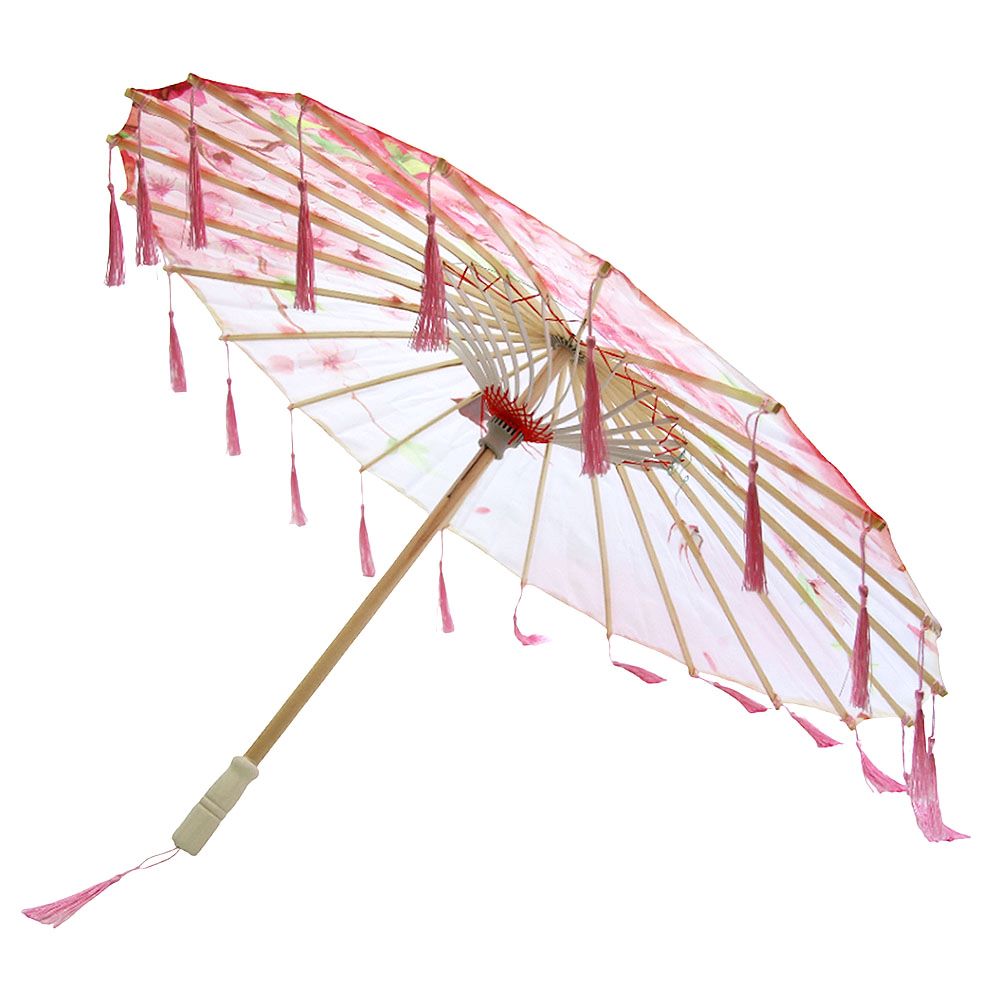 Китайские тканевые зонтики цветочные с кисточками 82х54 см