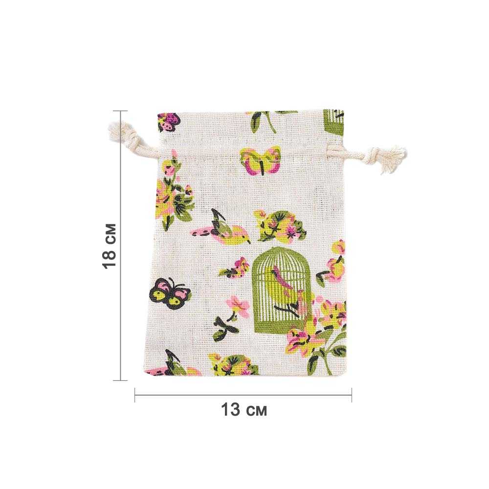 Мешочек из искусственного льна с принтом 13х18 см, №1