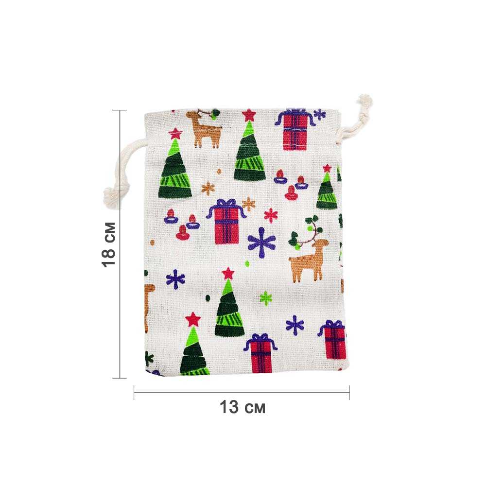 Мешочек из искусственного льна с принтом 13х18 см, №24