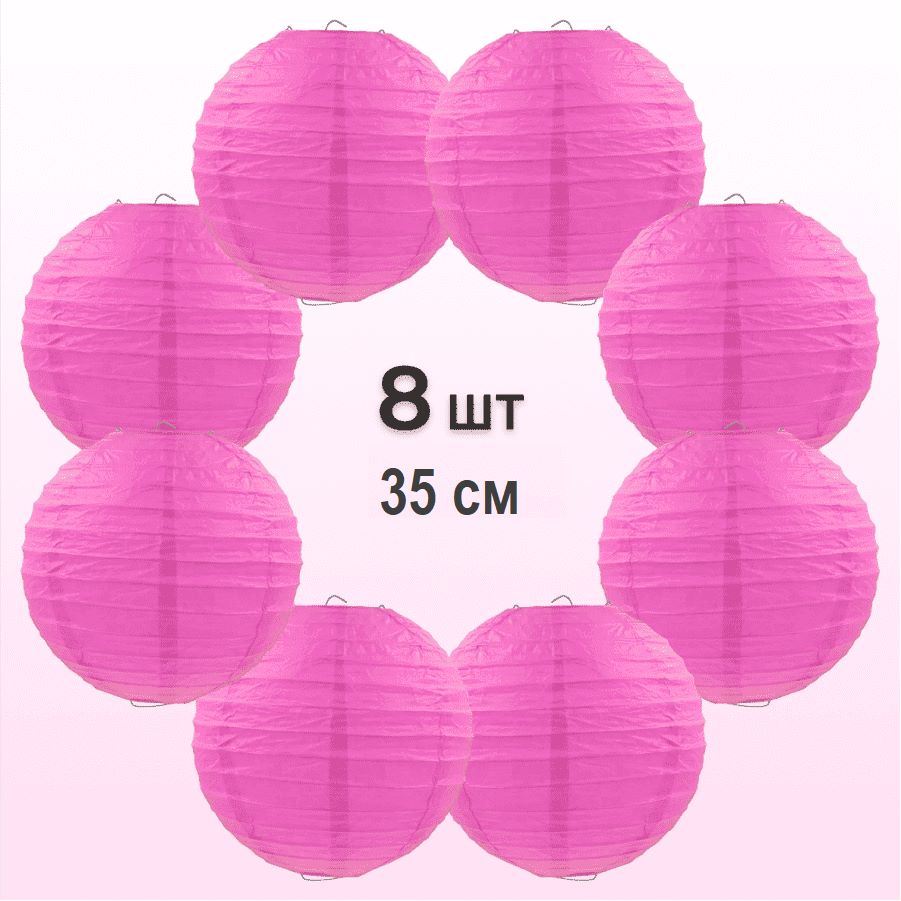 Комплект подвесные фонарики 35 см х 8 шт, малиновый