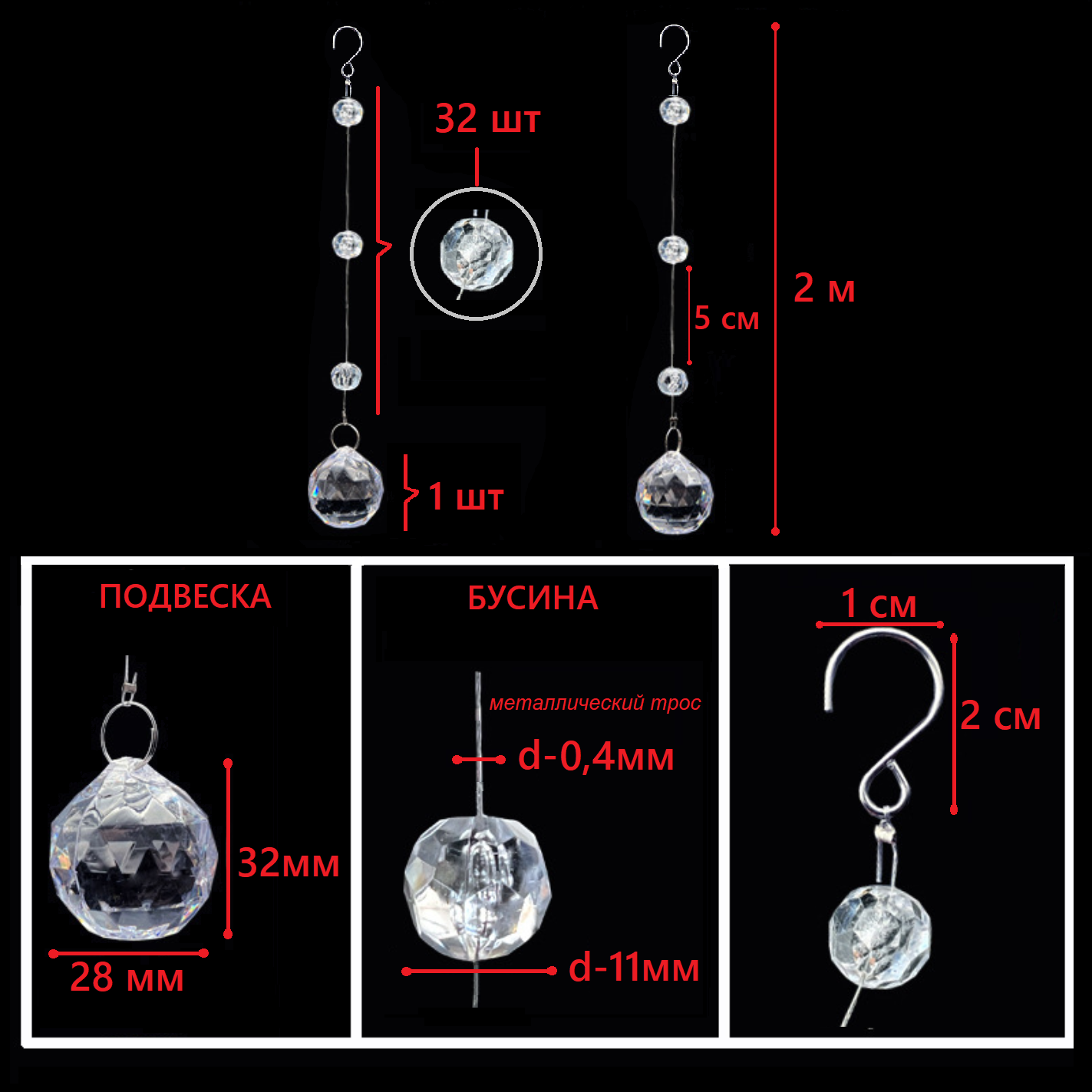 Набор струн с акриловыми бусинами №1, 10шт х 2м