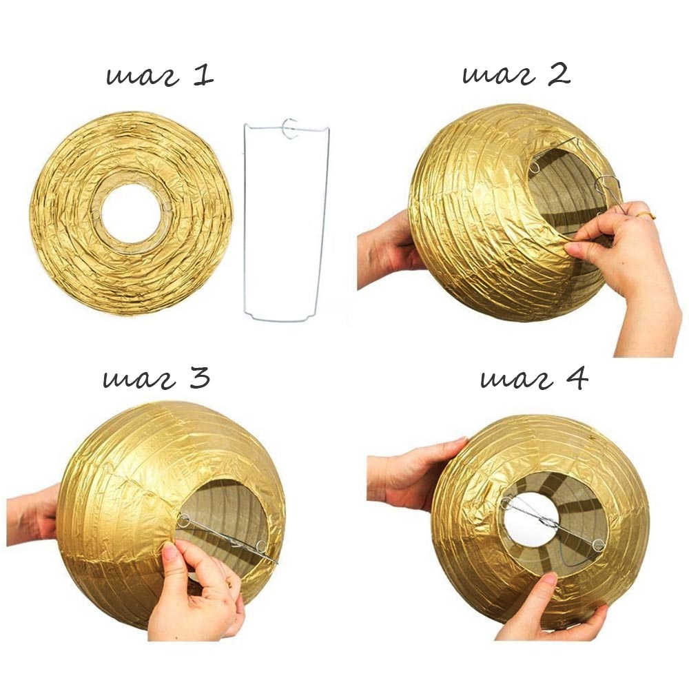 Цвет шара — золото. Особенно эффектно будет смотреться блестящая поверхность, если в фонарике разместить светодиодную лампу.