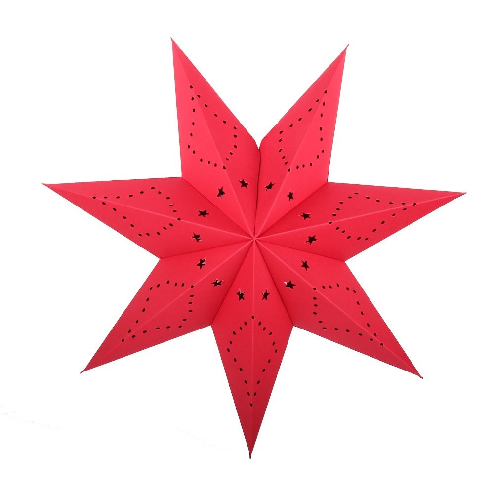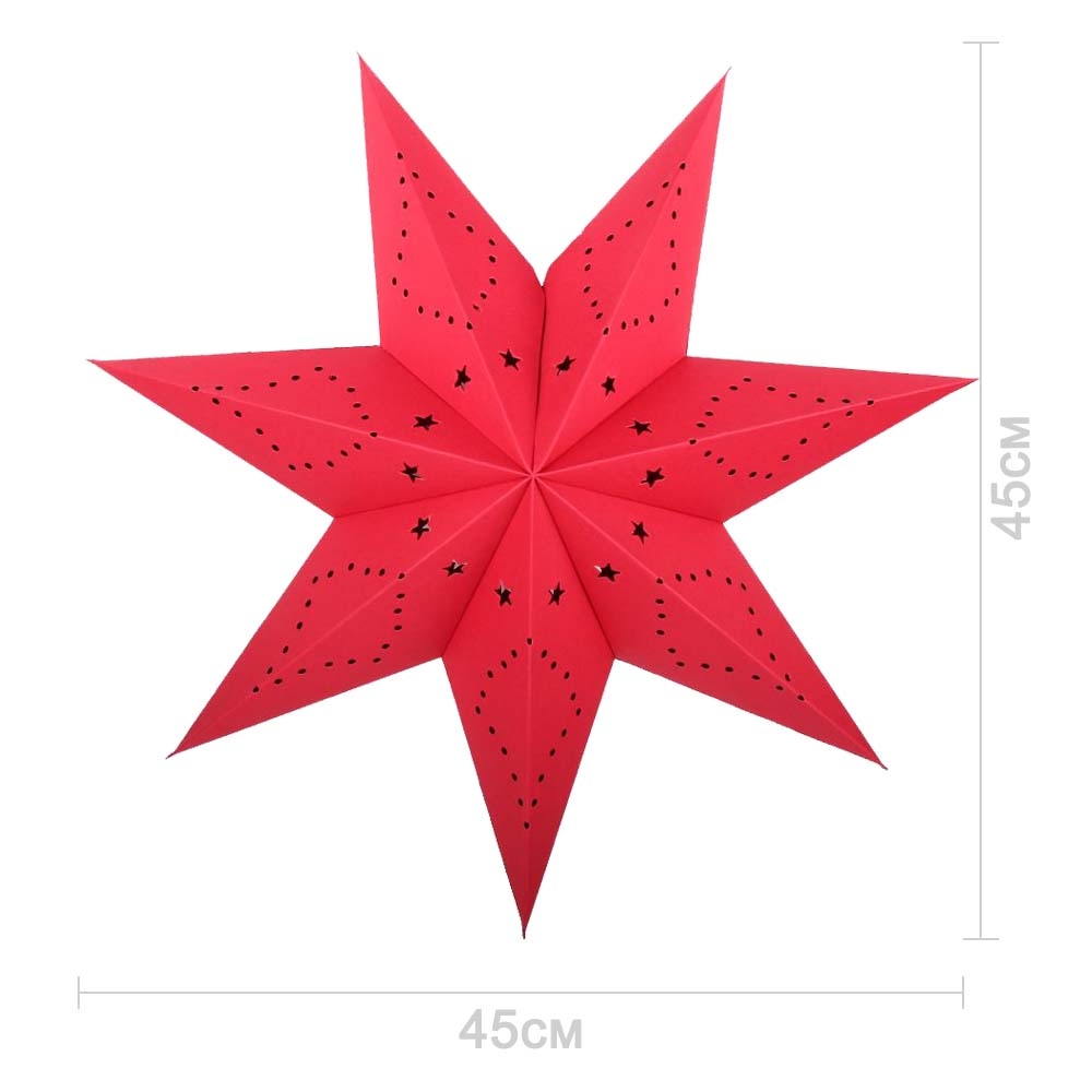 Семиконечная объемная звезда 45 см — великолепный декор из тонкого перфорированного картона. Создает красивые световые эффекты. Поставляется в сложенном виде, в комплекте шнур для фиксации объема и подвеса.